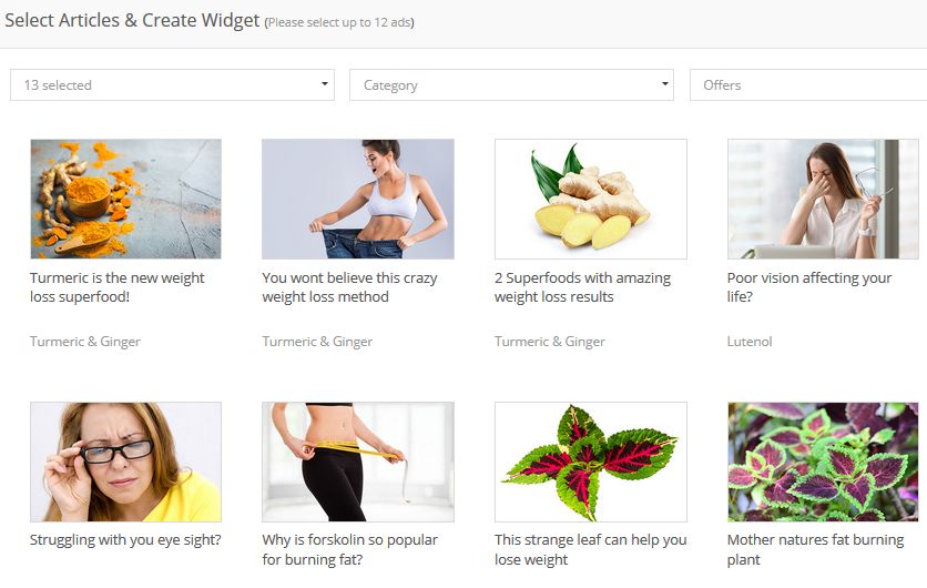 Статейный виджет! Есть и такая суперкрутая штука в партнерской программе для буржунета HealthTrader – находится в «Tools». Идеально подходит для информационных проектов. Позволяет выбирать нужные категории и имитирует реальные статьи. При нажатии редиректит на выбранные вами офферы.