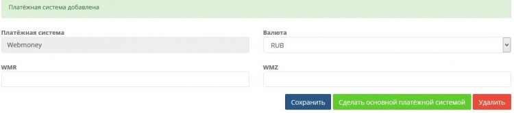 Платежные системы – Вебмани, Киви, Банковский перевод. Выбираете нужную вам и делаете ее основной для выплат.