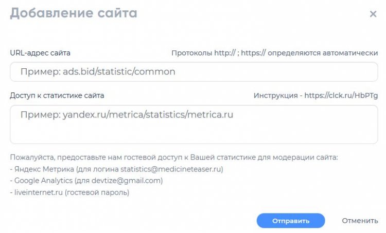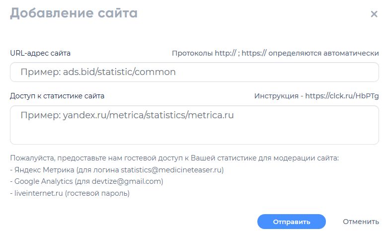 Админка максимально простая. Напомню, что сейчас доступны только тизеры. Но скоро в партнерке будут и другие форматы рекламы.